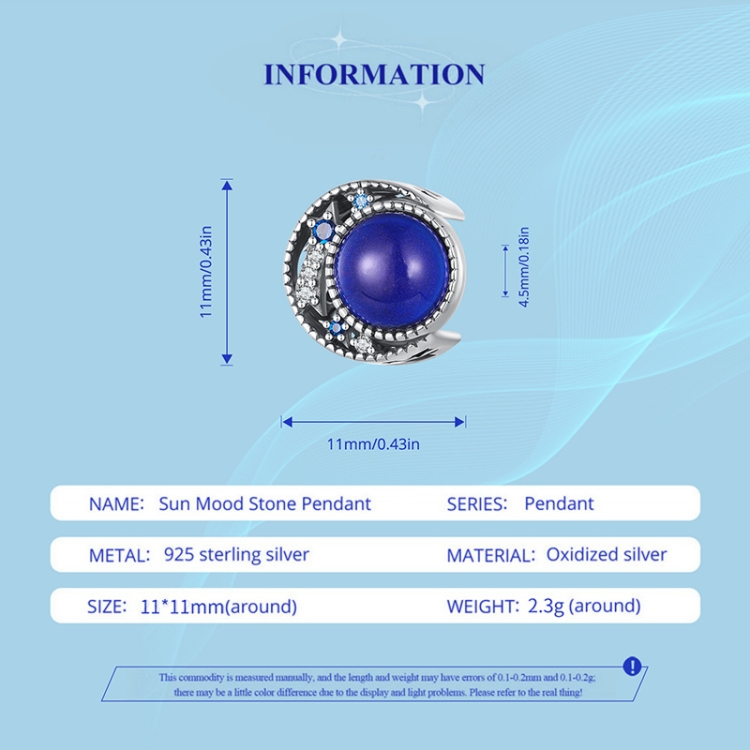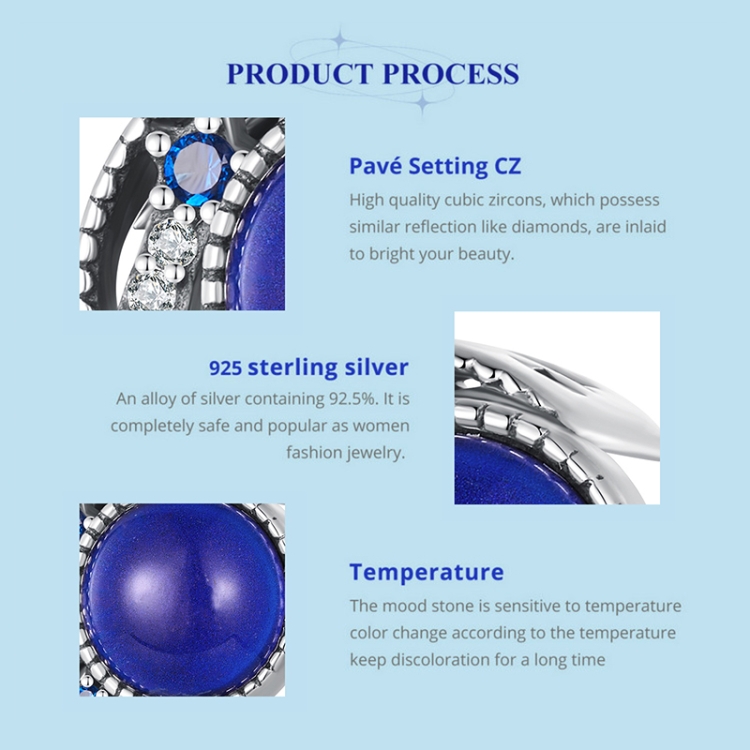 SCC2558 Sterling Silver S925 Temperature Sensitive Discoloration DIY Blue Moon Bead Bracelet Decoration