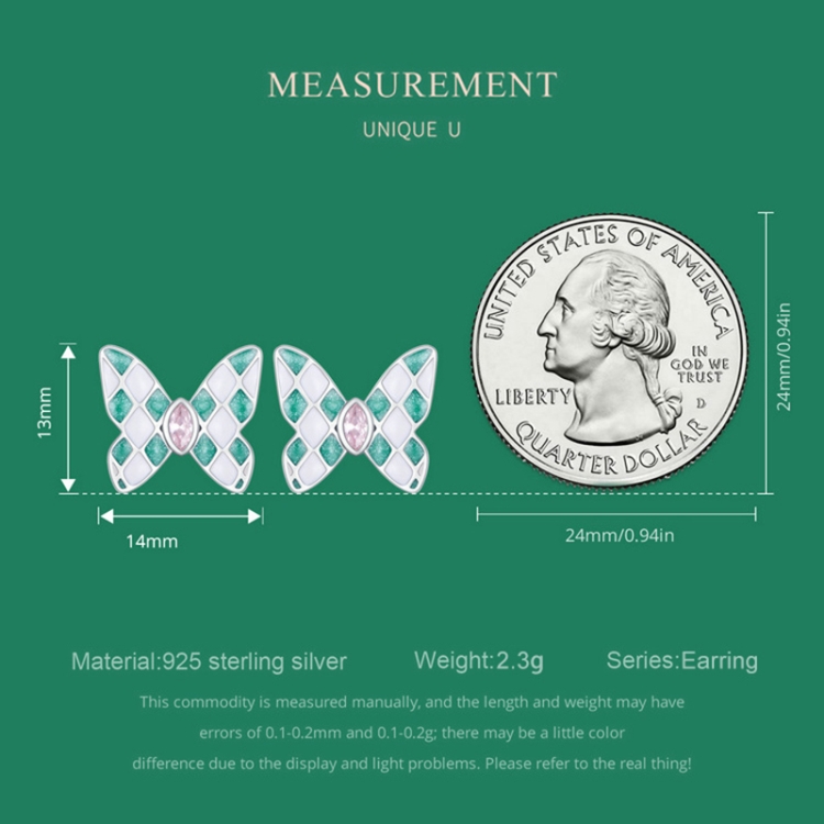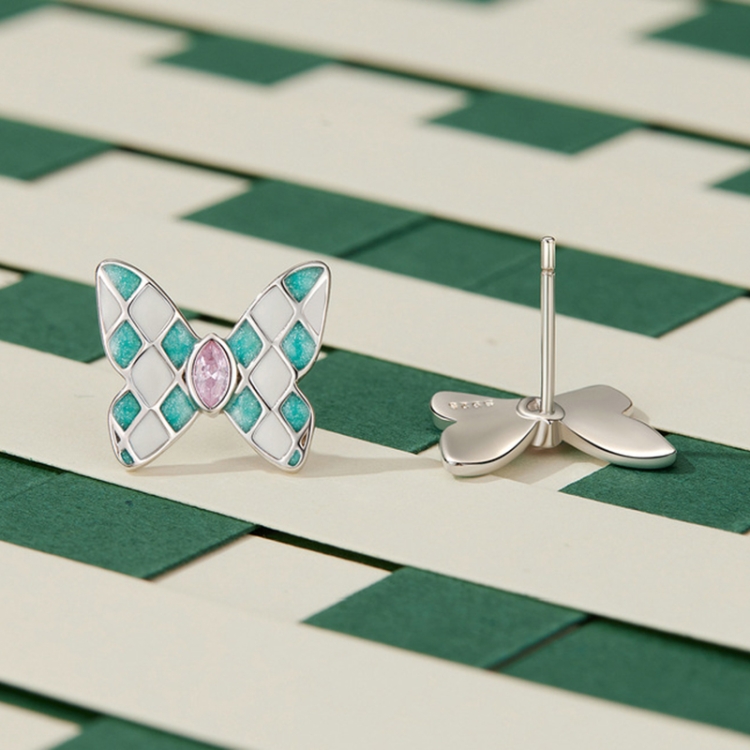 SCE1610 Sterling Silver S925 White Gold Plated Zircon Rhombus Spot Butterfly Stud Earrings