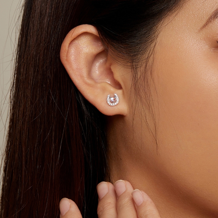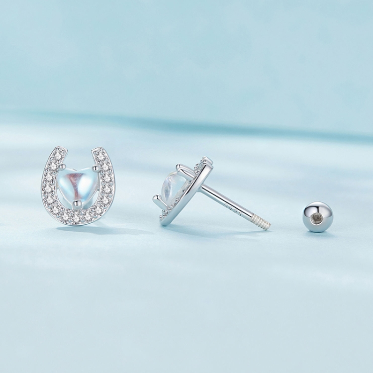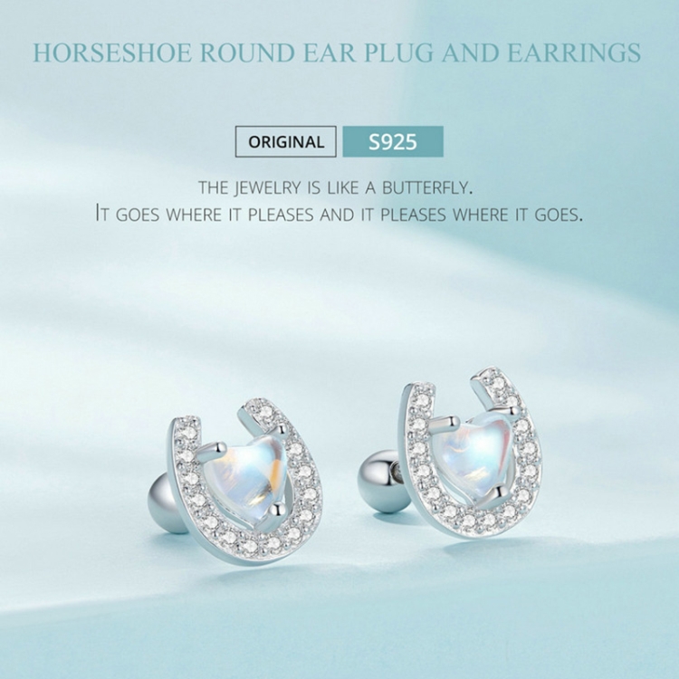 SCE1612 Sterling Silver S925 Horseshoe Round Stud Earrings