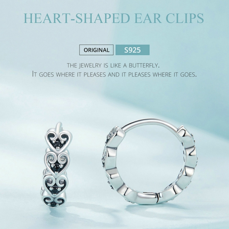 SCE1613 Sterling Silver S925 Black Heart Shape Earrings