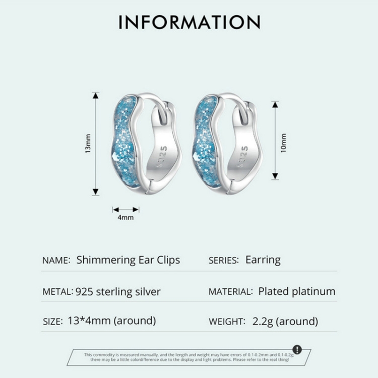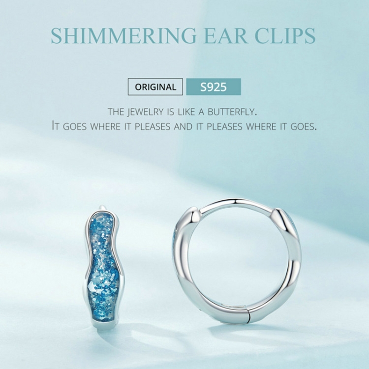 SCE1614 Sterling Silver S925 Blue Sparkling Wave Earrings