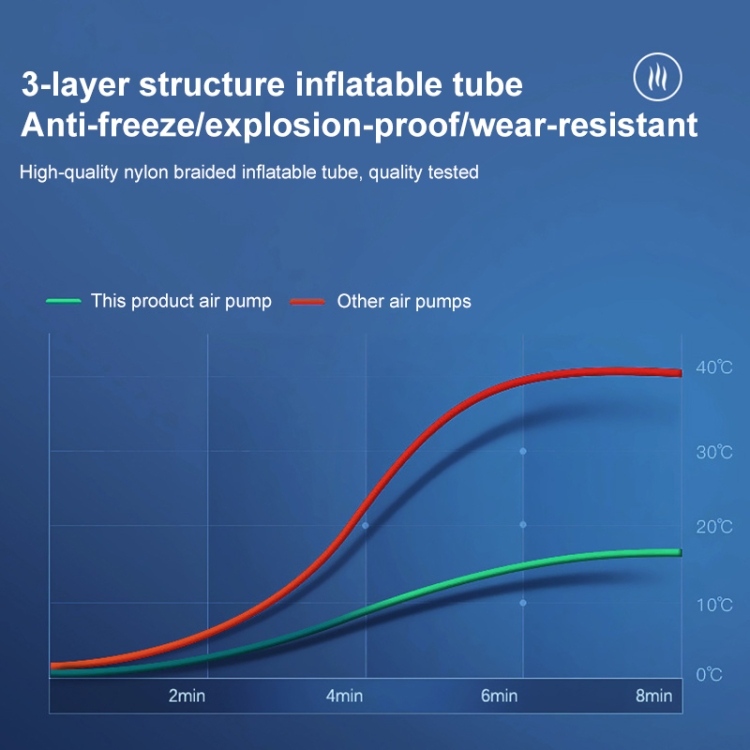 1. Pure copper motor air flow boosting technology, rapid inflation in 10 seconds, effectively and quickly increase the inflation speed.