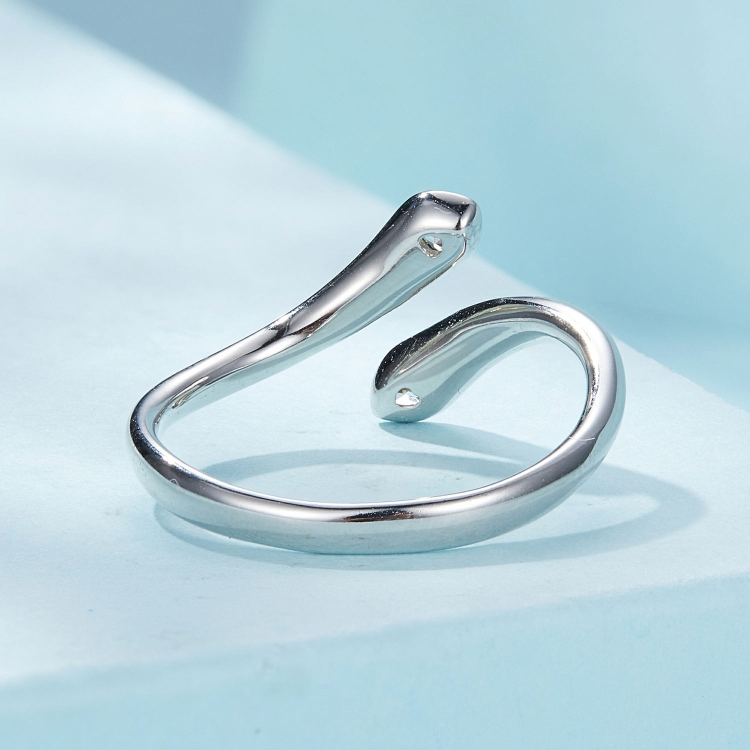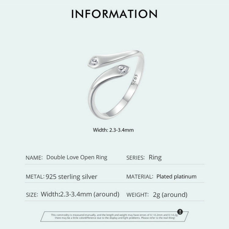 SCR946-E Sterling Silver S925 White Gold Plated Zircon Double Heart Opening Adjustable Ring