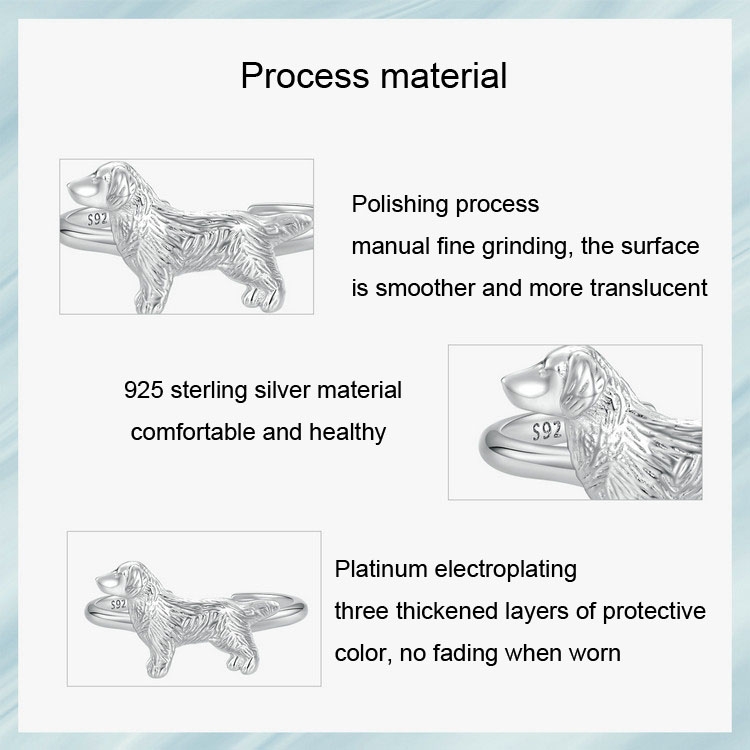 SCR952-E S925 Sterling Silver Cute Little Golden Retriever Puppy Ring