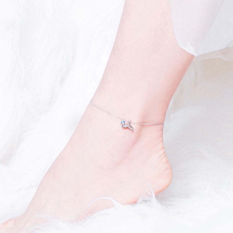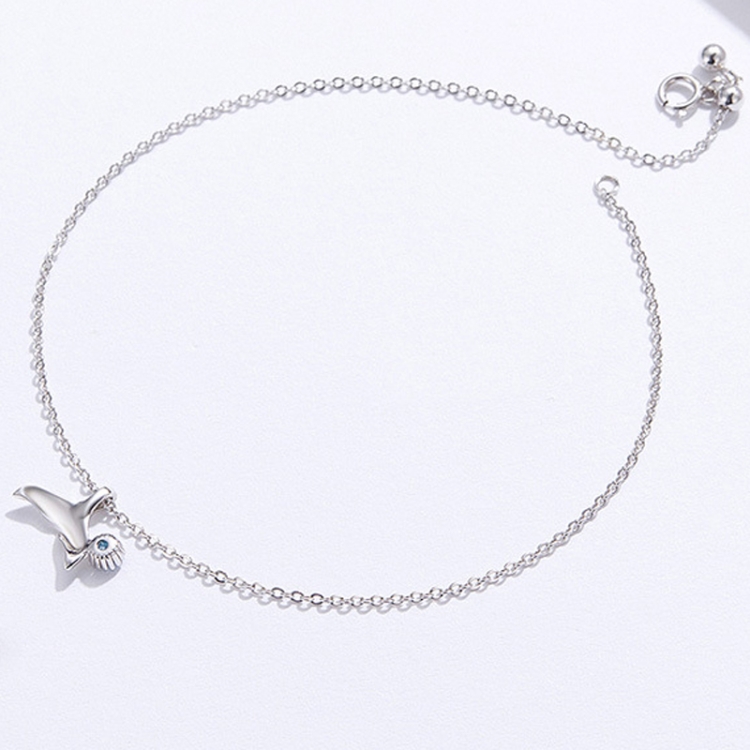 SCT004 Mermaid Tail Anklet Simple White Gold Plated Ladies 925 Silver Anklet