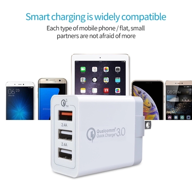 SDC-30W 30W QC 3.0 USB + 2.4A Dual USB 2.0 Ports Mobile Phone Tablet PC Universal Quick Charger Travel Charger, US Plug