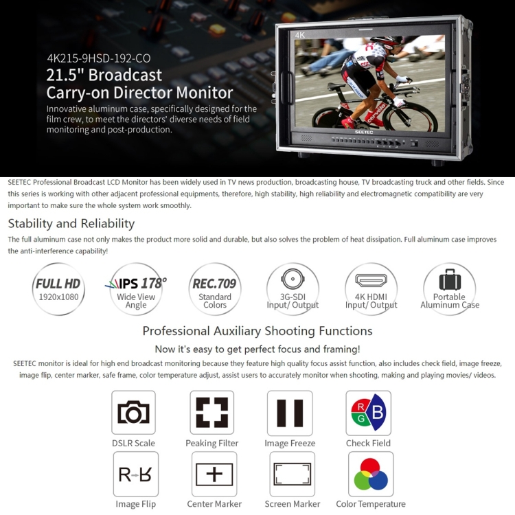 SEETEC 4K215-9HSD-CO 1920×1080 21.5 inch SDI / HDMI Full HD Director Box Camera Field Monitor