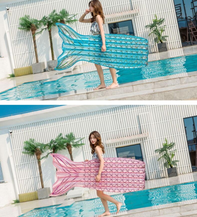 Sequins Fish Tail Shape Floating Row Water Inflatable Floating Bed