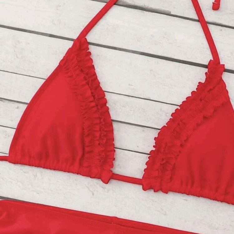 2. Bikinis featuring a smooth sexy adjustable triangle cups, halter neck top, adjustable elastic straps with a tie back closure.