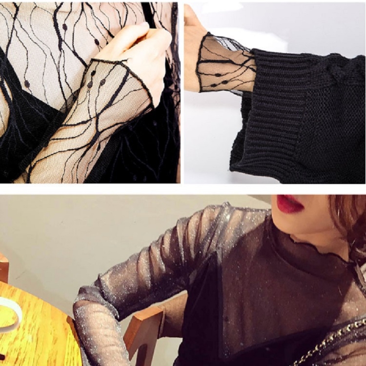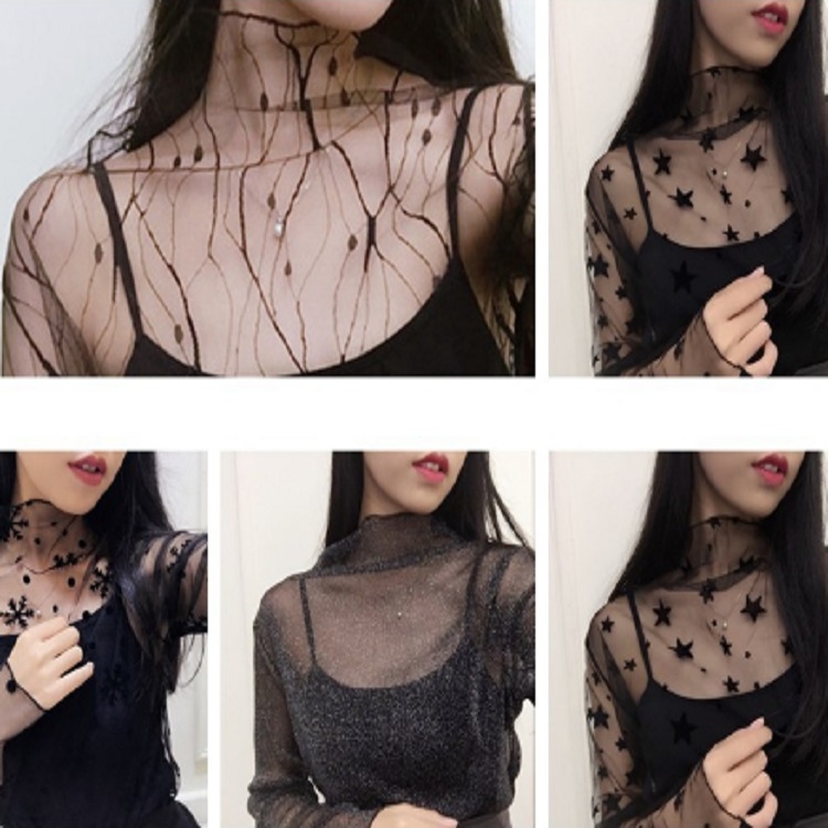 Sexy Mesh High Collar Long Sleeve Bottoming Blouse