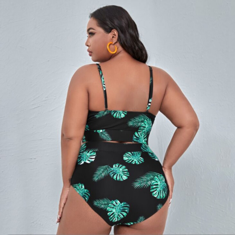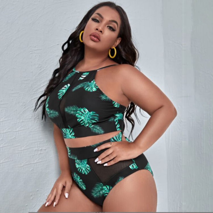 Sexy Plus Size Printed Split High Waist Bikini Swimsuit