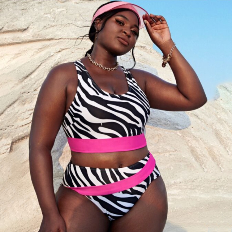 2. Super fit plus size sexy print 2-piece swimsuit, high waisted design, high cut cheeky bottom, highlight your body beauty.