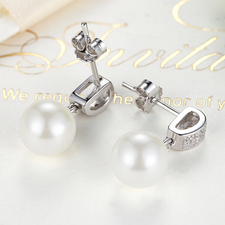 Shell Bead Earrings S925 Sterling Silver Stud Earrings Inlaid Silver Jewelry