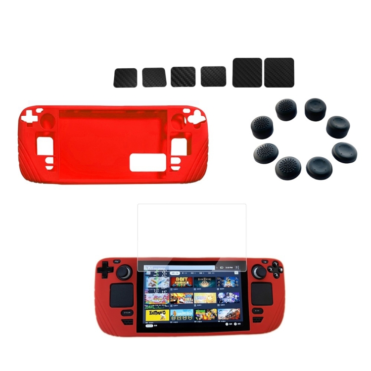 6. Product list: silicone cover + 8pcs rocker cap + 6pcs sticker + tempered film
