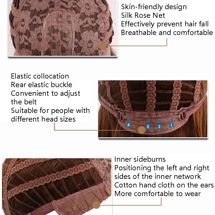 8. Features: skin-friendly design, silk rose net, effectively prevent hair from falling, breathable and comfortable, rear elastic buckle, easy to adjust the size of the belt, suitable for people with different head sizes, both sides of the inner net can be used for positioning left and right , with cotton hand cloth on the ears, more comfortable to wear