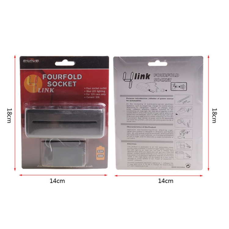 SHUNWEI SD-1906 Car 4 In 1 Power Distributors Cigarette Lighter Socket Car Charger