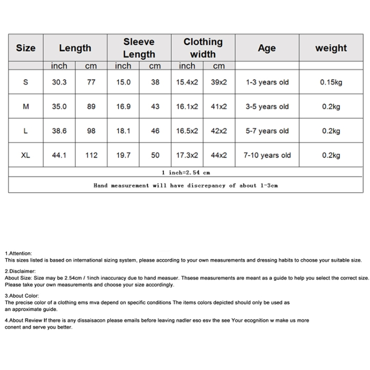 4. Model information: boy’s height is 95 cm, size S; girl’s height is 105 cm, size M