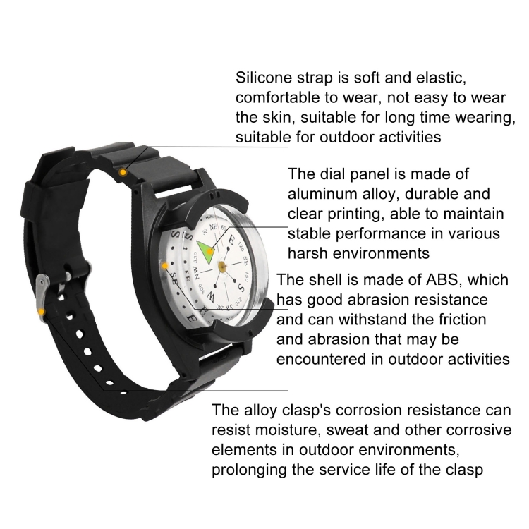 Silicone Strap Waterproof Portable Outdoor Wristwatch Style Compass