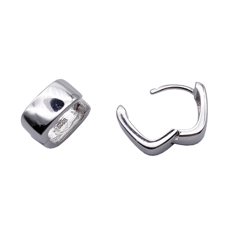 Silver Needle Wide Square Earrings Buckle Type Easy Wear Without Picking Earrings