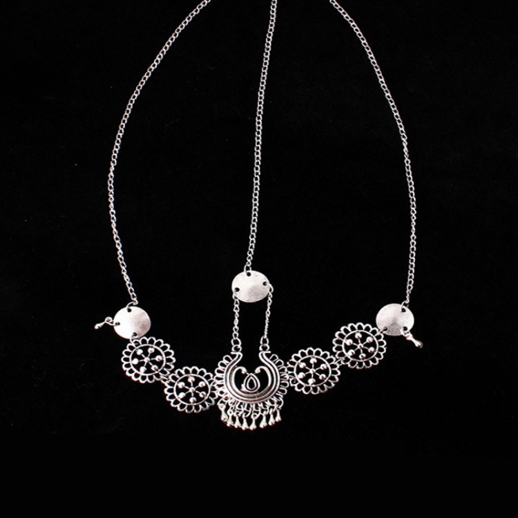 Silver Vintage Tassel Hair Jewelry Metal Coin Headband Long Punk Head Chain Piece Forehead Headpiece