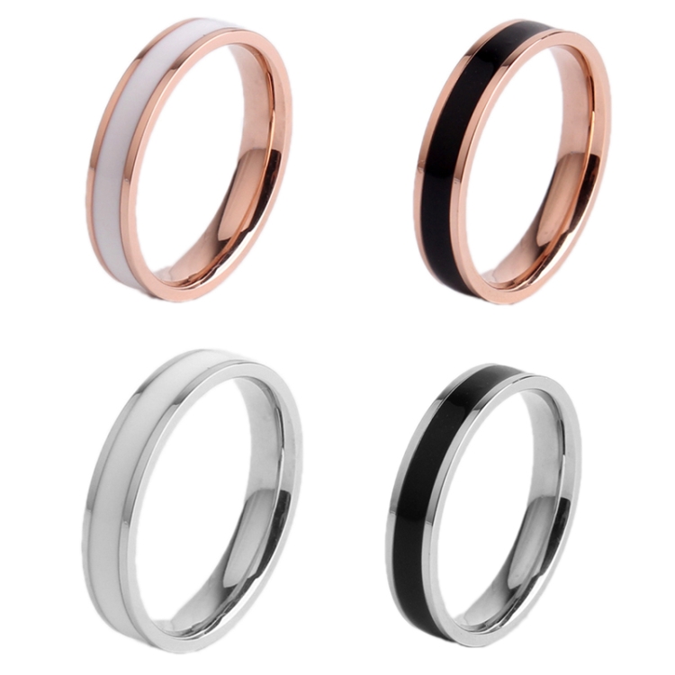 Simple Black White Epoxy Couple Ring Women Titanium Steel Ring Jewelry