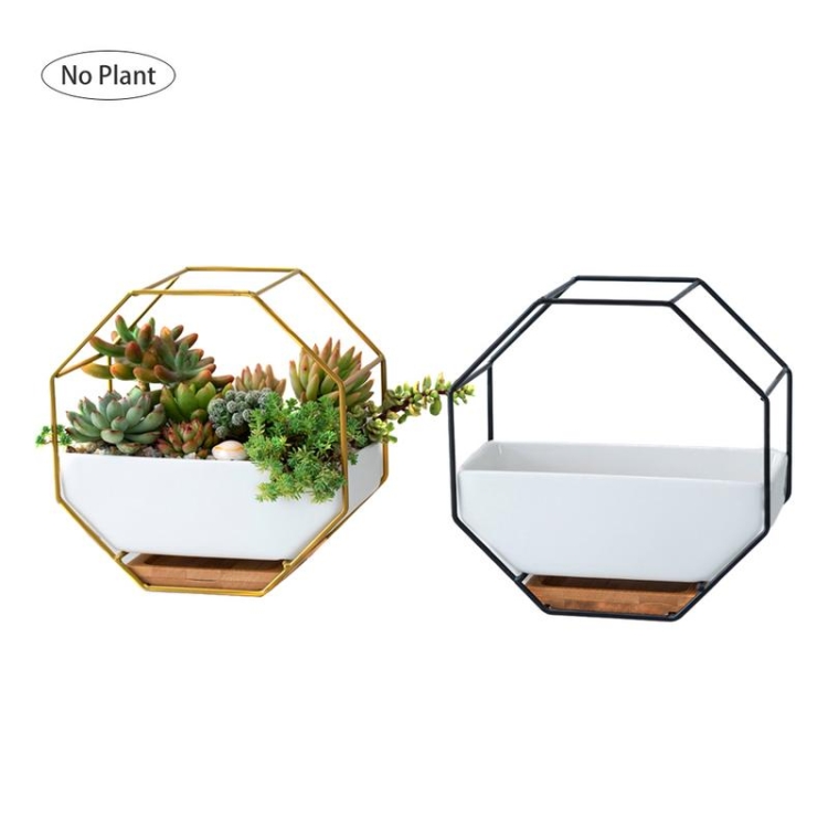 Simple Octagonal Geometric Wall Hanging Table Succulent Platter Bamboo Support Iron Frame Flower Pot