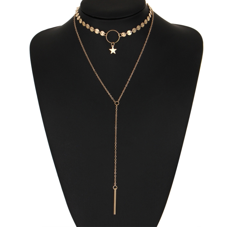 Simple Sexy Handmade Sequins Star Tassels Circle Clavicle Chain Long Pendant Double-layer Chain