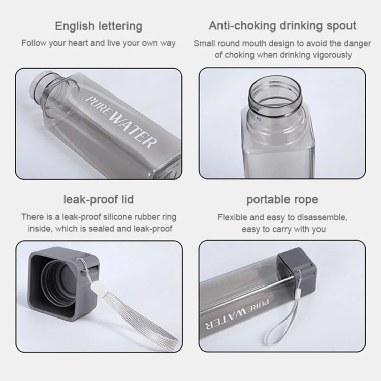 Simple Square Mug Portable Leak-Proof Plastic Cup Sports Camping Bottle