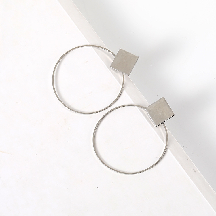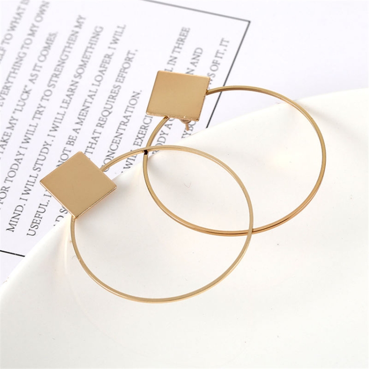 Simple Style Fashion Earrings Women Square Round Geometric Hanging Earrings
