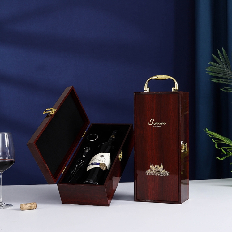 Single Piano Finish Red Wine Box Wooden Packing Case Wine Gift Box With Tools