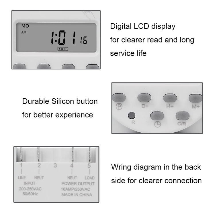 SINOTIMER CN101A 5V 16A Digital LCD Timer Switch Programmable Timer Controller