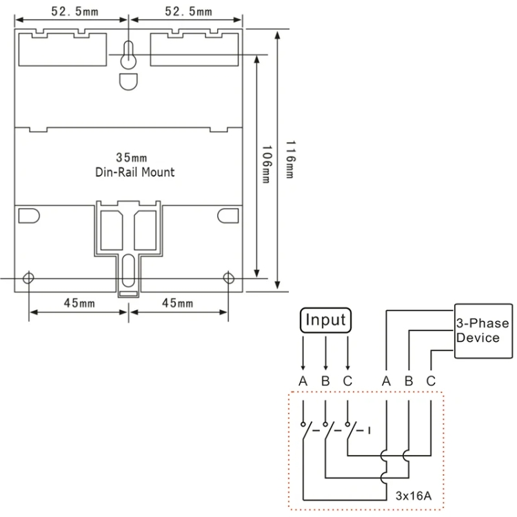 1. TM613 programmable three-phase timer switch, three live wire input, three live wire output, solves the inconvenience of neutral wire for some customers.