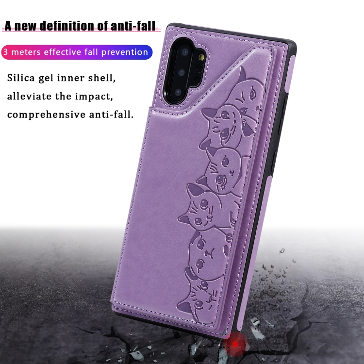Six Cats Embossing Pattern Protective Case with Holder & Card Slots & Photo Frame