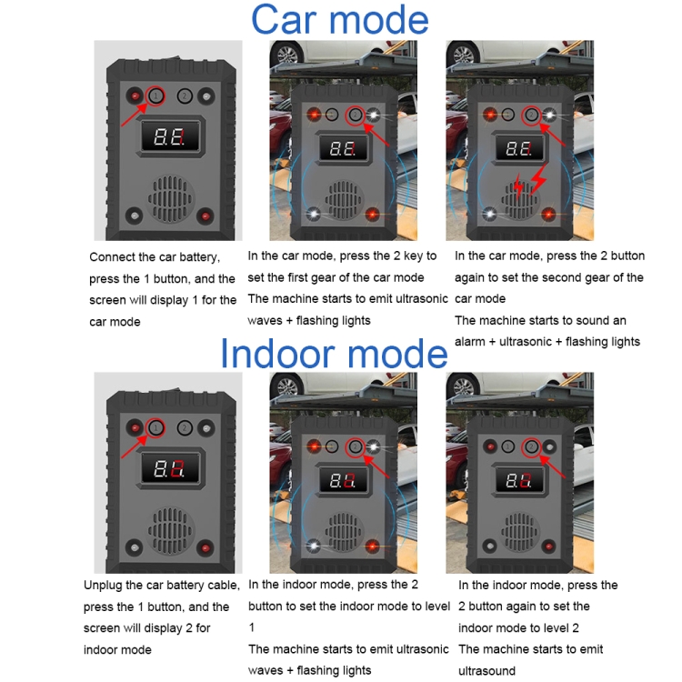 8. With 8 LED red and white flashing lights, effectively repelling mice