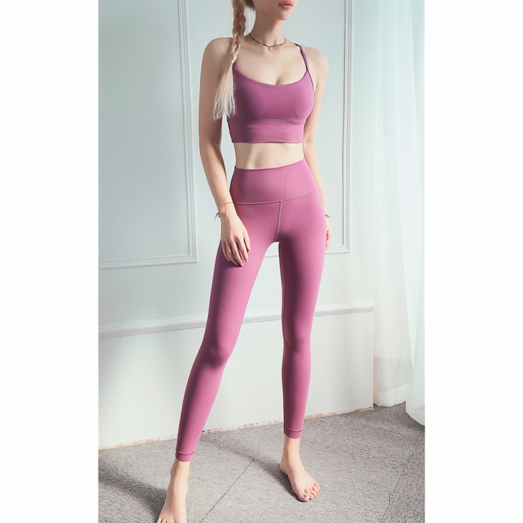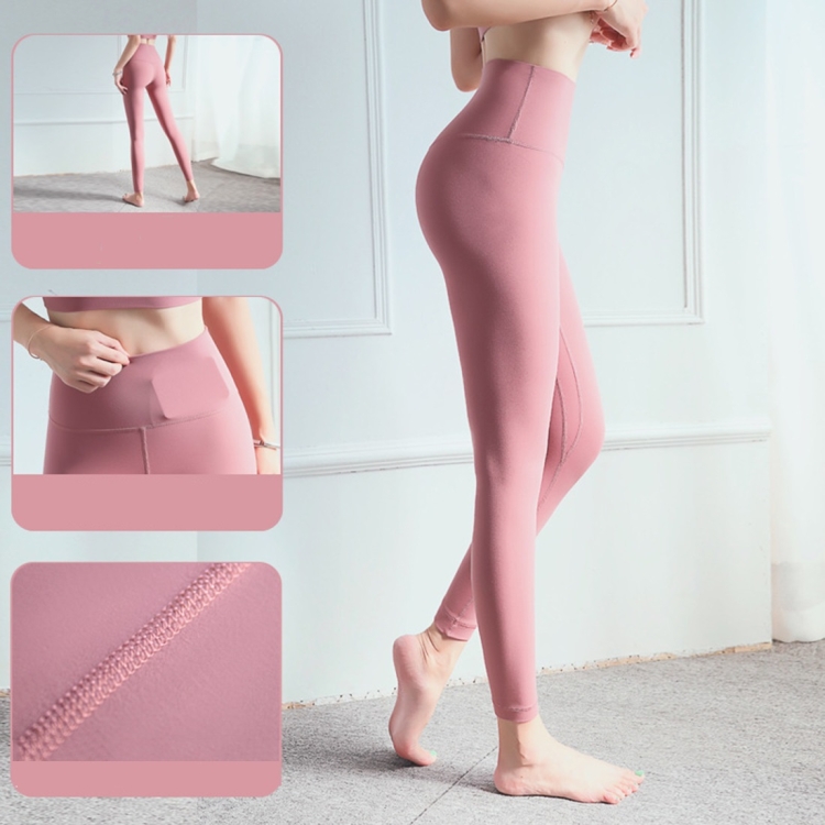 Skin Friendly And Nude Fashion Yoga Pants High Waist, Abdomen And Hip Lifting Fitness Pants (Color:Plum Size:S)