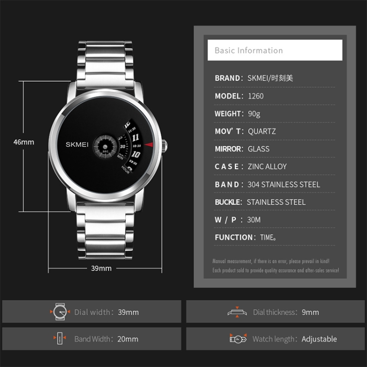 SKMEI 1260 Fashion Creative Pointer 30m Waterproof Quartz Wrist Watch with Stainless Steel Watchband