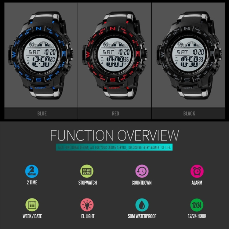 SKMEI 1380 Men Fashionable Outdoor 50m Waterproof Digital Watch Large Dial Sports Wrist Watch