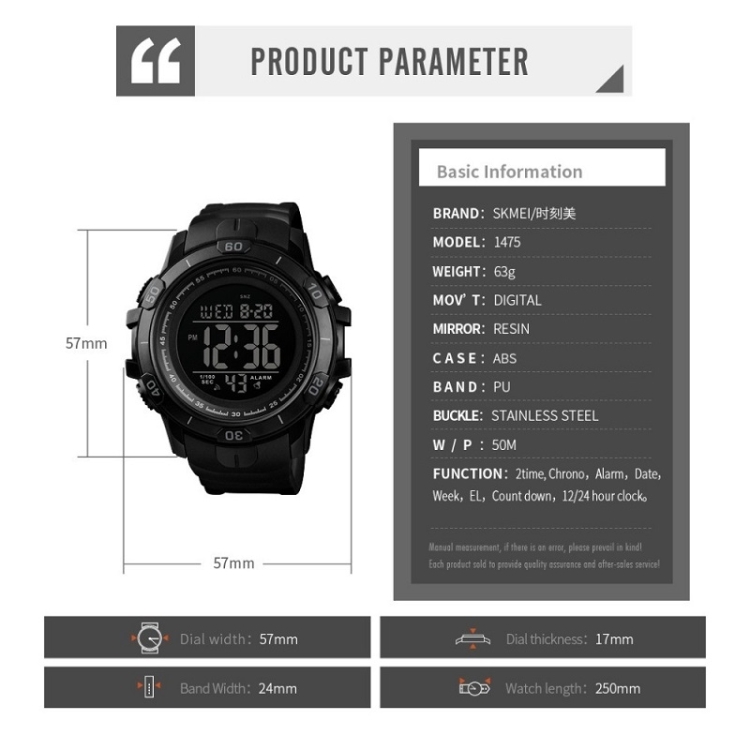 SKMEI 1475 Men Multifunctional Sports Watch Students Outdoor Waterproof Digital Watch