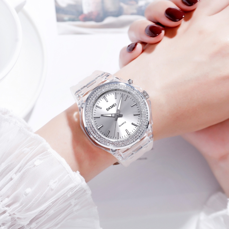 SkMEI 1553 Women LED Color Light Transparent Waterproof Watch Inlaid With Water Drill