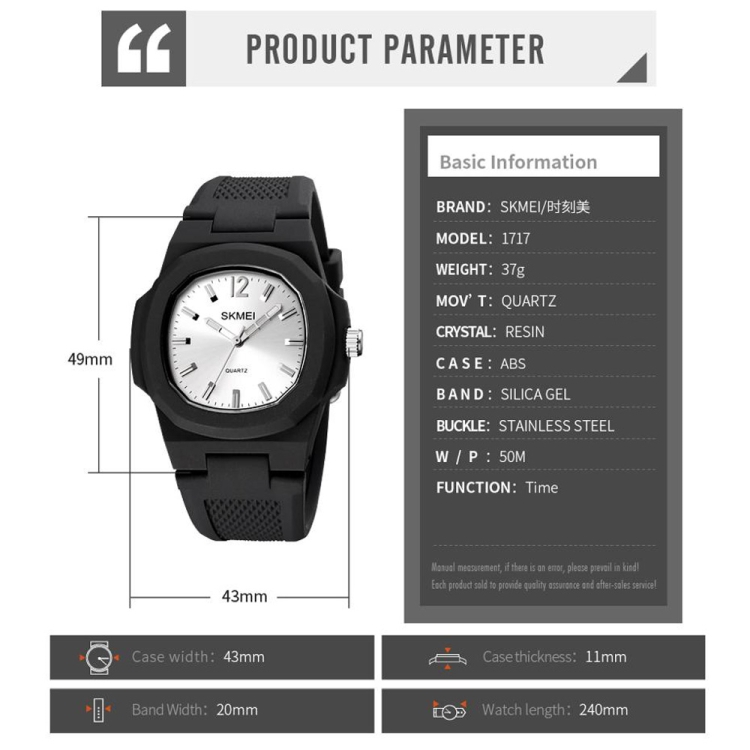 SKMEI 1717 Square Men Watch Outdoor Sports Pointer Waterproof Quartz Watch