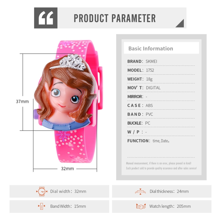 SKMEI 1752 Three-dimensional Cartoon Princess LED Digital Display Electronic Watch for Children
