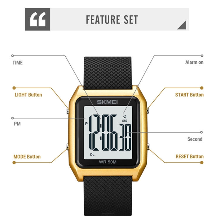 Be the first to review “SKMEI 1866 Square Large Screen Men Steel Belt Multi-function Night Light Alarm Clock Watch” Cancel reply