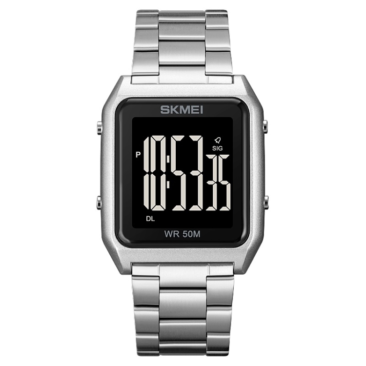 SKMEI 1879 Square Large Screen Men Steel Belt Multi-function EL Luminous Watch