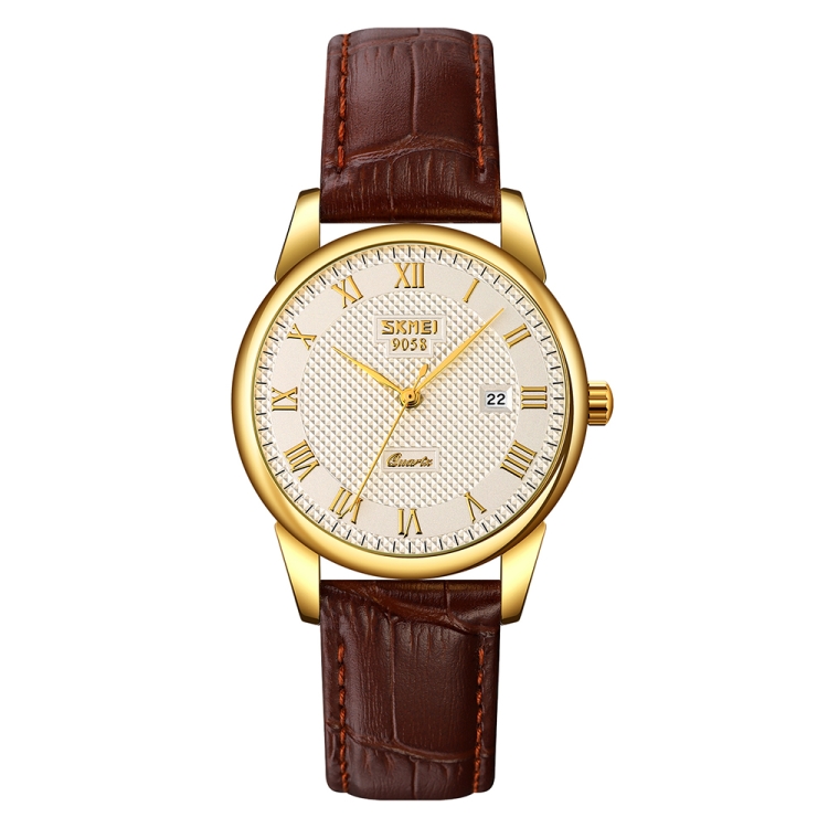 SKMEI 9058 Multifunctional Outdoor Fashion Waterproof Gold Shell Quartz Wrist Watch