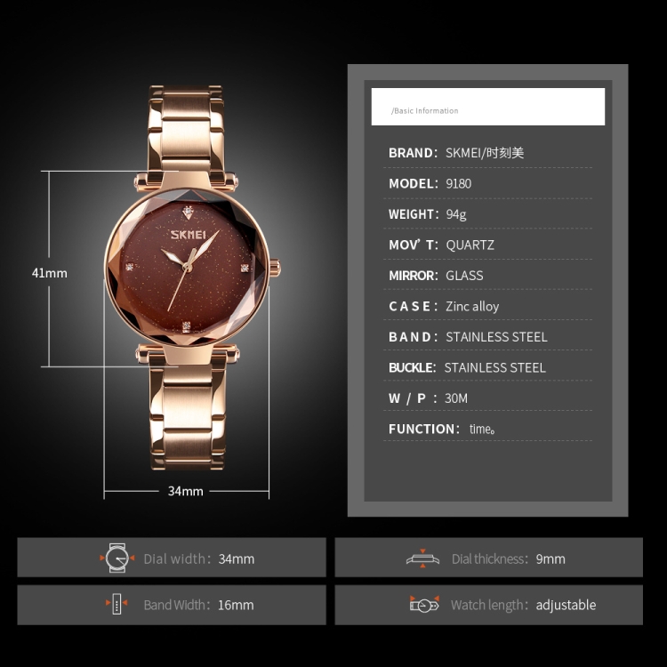 SKMEI 9180 Starry Sky Dial Stainless Steel Strap Quartz Watch for Ladies