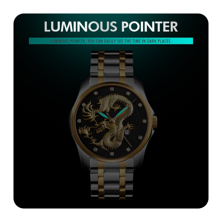 SKMEI 9193 Men Golden Dragon Pattern Calendar Dial Luminous Quartz Watch