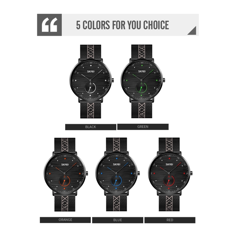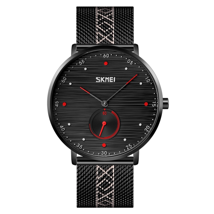 SKMEI 9218 Men Horizontal Striped Arabic Numeral Dial Mesh Belt Quartz Watch