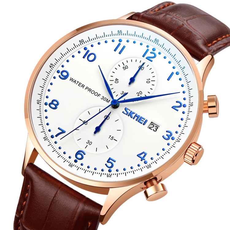 3. Material: zinc alloy case, leather strap, stainless steel bottom cover, stainless steel buckle