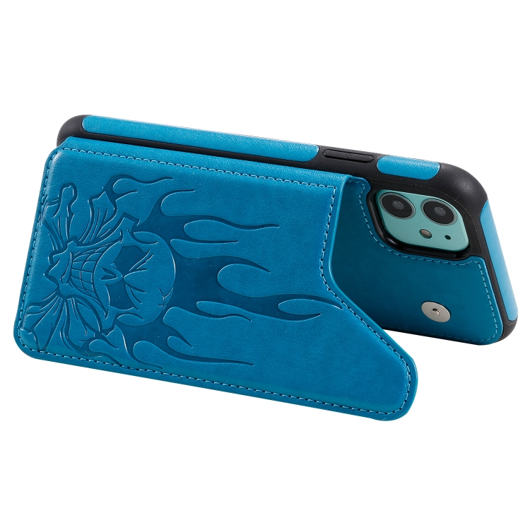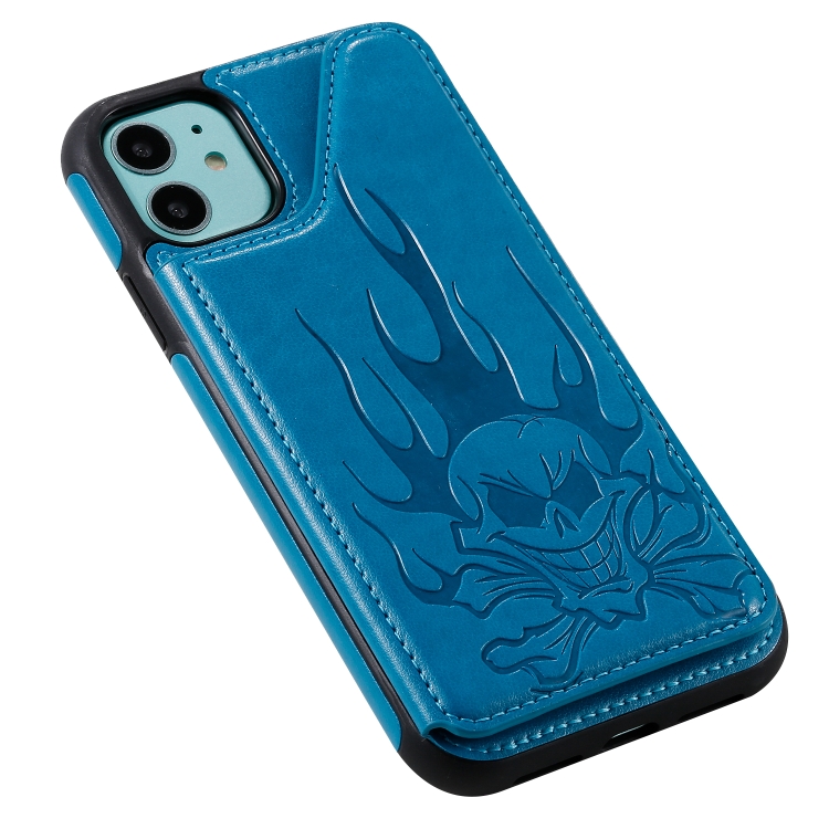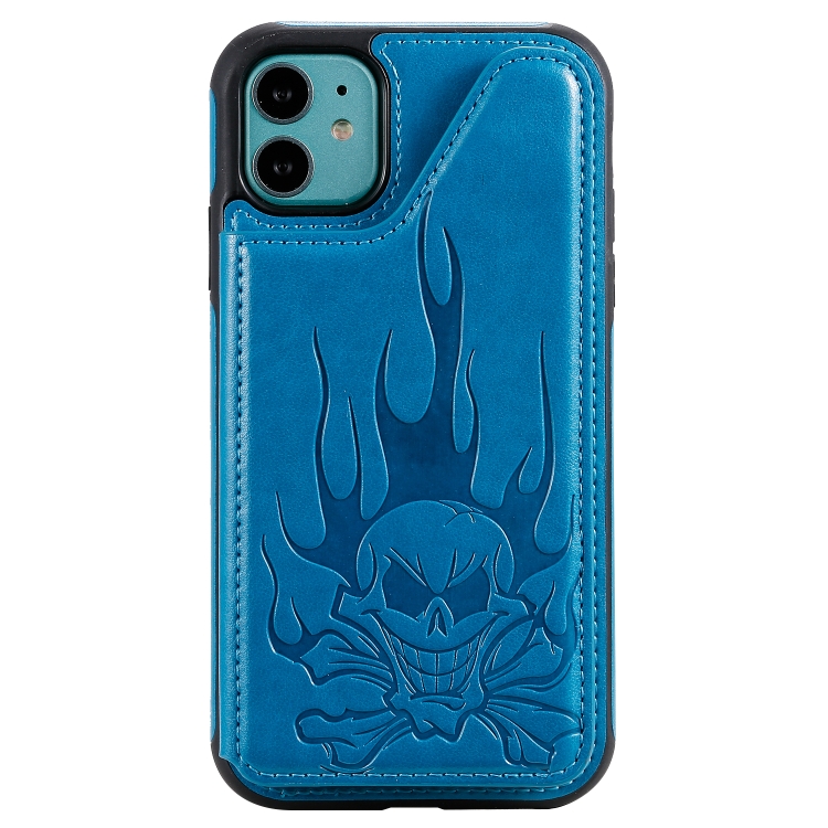 Skull Head Embossing Pattern Shockproof Protective Case with Holder & Card Slots & Wallet
