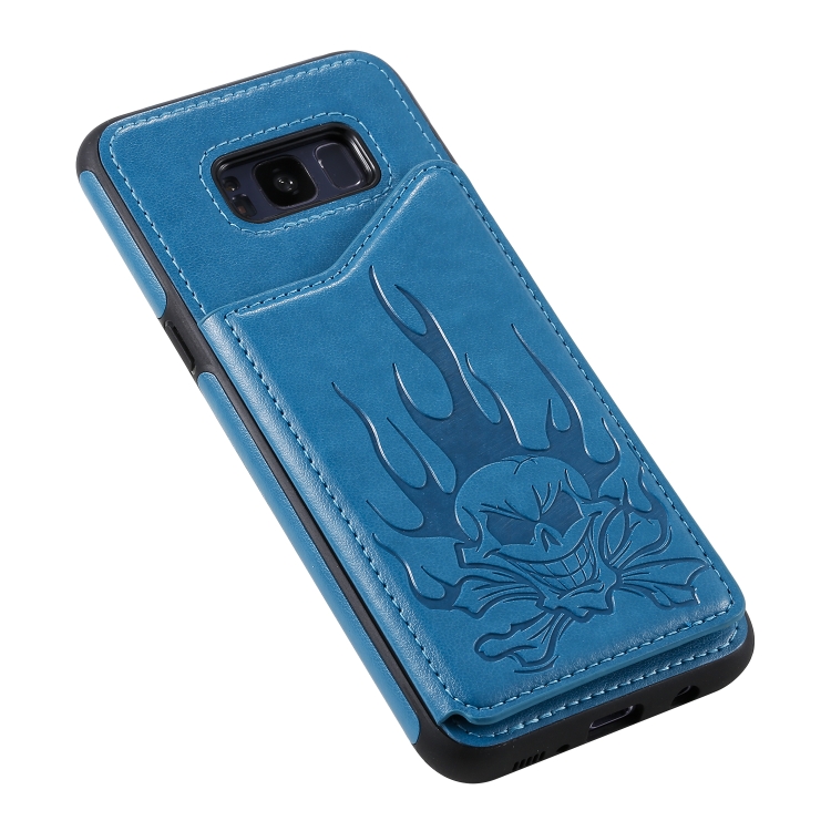 Skull Head Embossing Pattern Shockproof Protective Case with Holder & Card Slots & Wallet